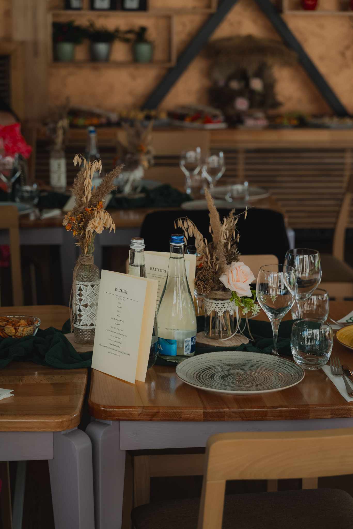 Barul și meniul de băuturi sunt gândite să completeze perfect preparatele culinare, punând la dispoziție o selecție de vinuri de calitate, cocktailuri artizanale și băuturi premium. Fiecare băutură este aleasă cu grijă pentru a oferi o experiență completă și rafinată invitaților.